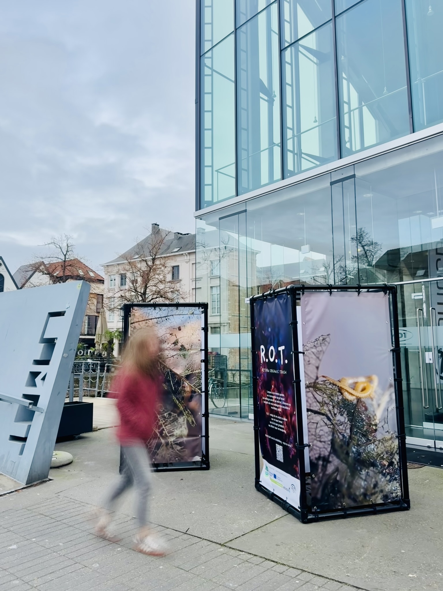Geïnspireerd door Charles Darwin bracht Stephanie honderden uren door tussen halfvergane etensresten. Ze bestudeerde texturen van bladeren, nerven, schimmeldraden en de razendsnelle bewegingen van de kleine dieren die zich in fracties van seconden verstoppen. De grootste uitdaging was het juiste moment te vatten: één kans om een diertje scherp in beeld te krijgen én het verhaal van die ondergrondse microwereld te tonen. Het project werd een persoonlijke ontdekkingsreis. Ze raakte gefascineerd door hoe elk dier, van pissebed tot miljoenpoot, een rol speelt bij het omzetten van afval in vruchtbare aarde. Met R.O.T. wil ze vooral verwonderen en mensen opnieuw verbinden met de natuur, zonder te moraliseren.