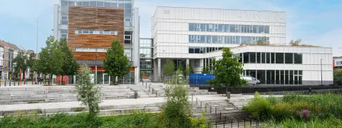 Een uitbreiding op Campus De Vest was nodig. Er kwamen nieuwe aula’s, hybride lokalen voor online en fysieke lessen, projectlokalen, een studentenrestaurant en een leercentrum. De campus werd een fijne plek voor studenten én personeel.